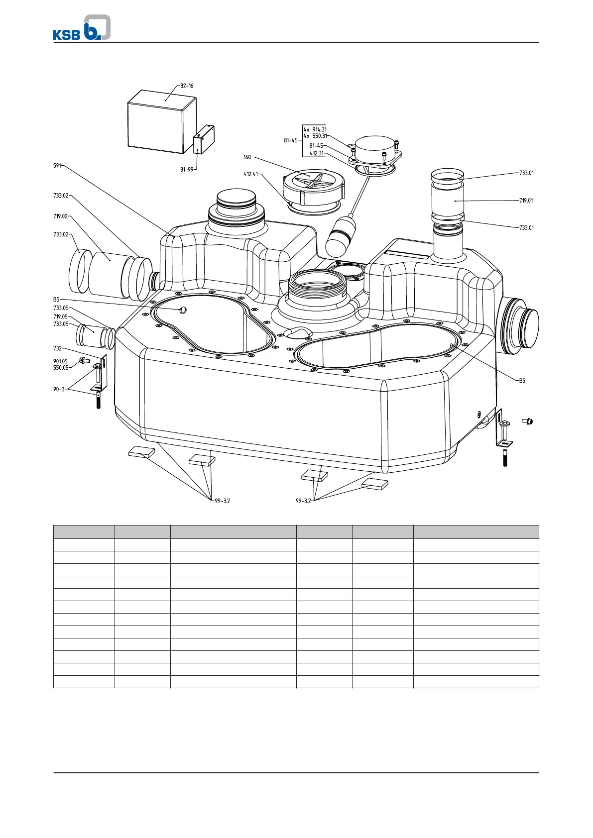 Fig. 41: Exploded view of mini-Compacta UZS150 - Collecting tank