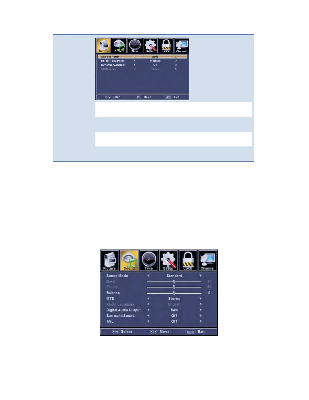 buttons to change the setting, and press the MENU button to exit the menu.