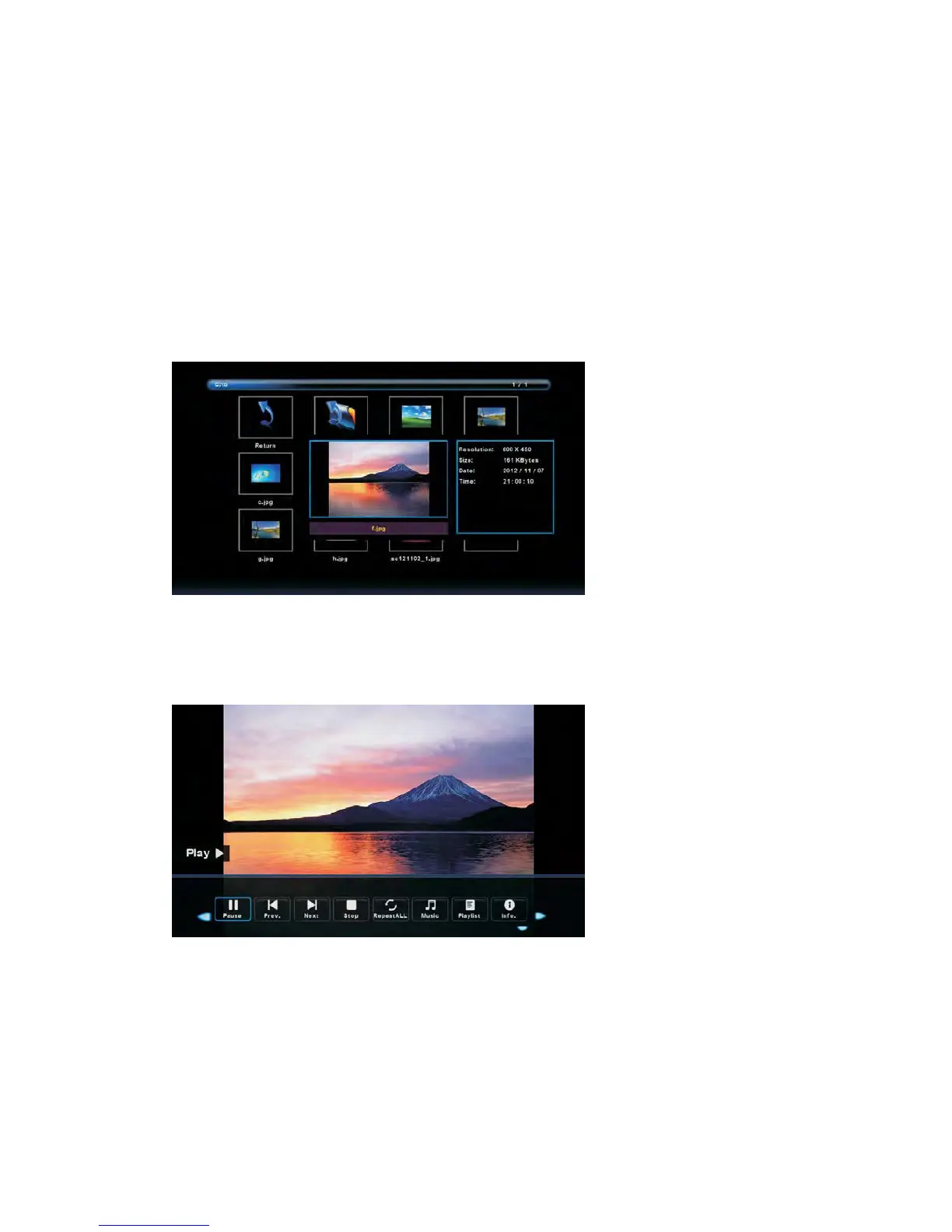 Press ◄/► button to select the file you want to watch in the file selecting menu.