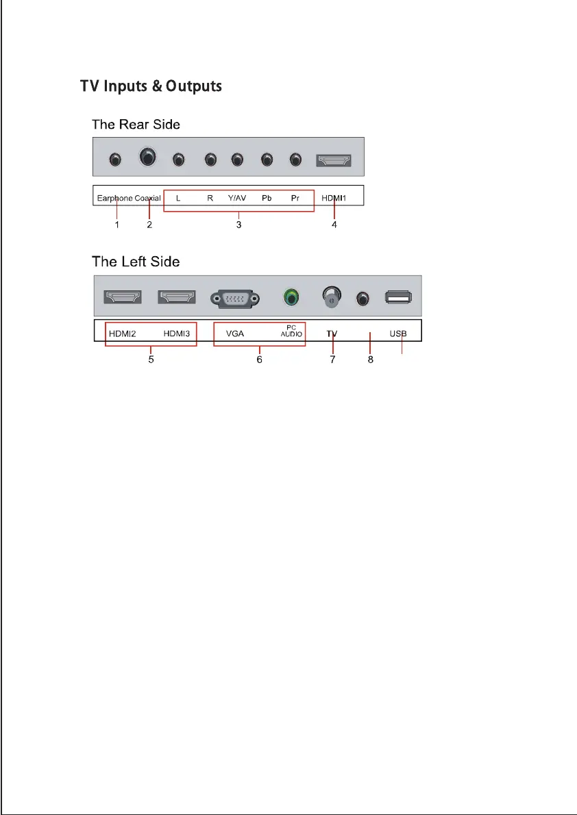 4/5. HDMI1, HDMI2 & HDMI3: Input from HDMI source (High Definion).