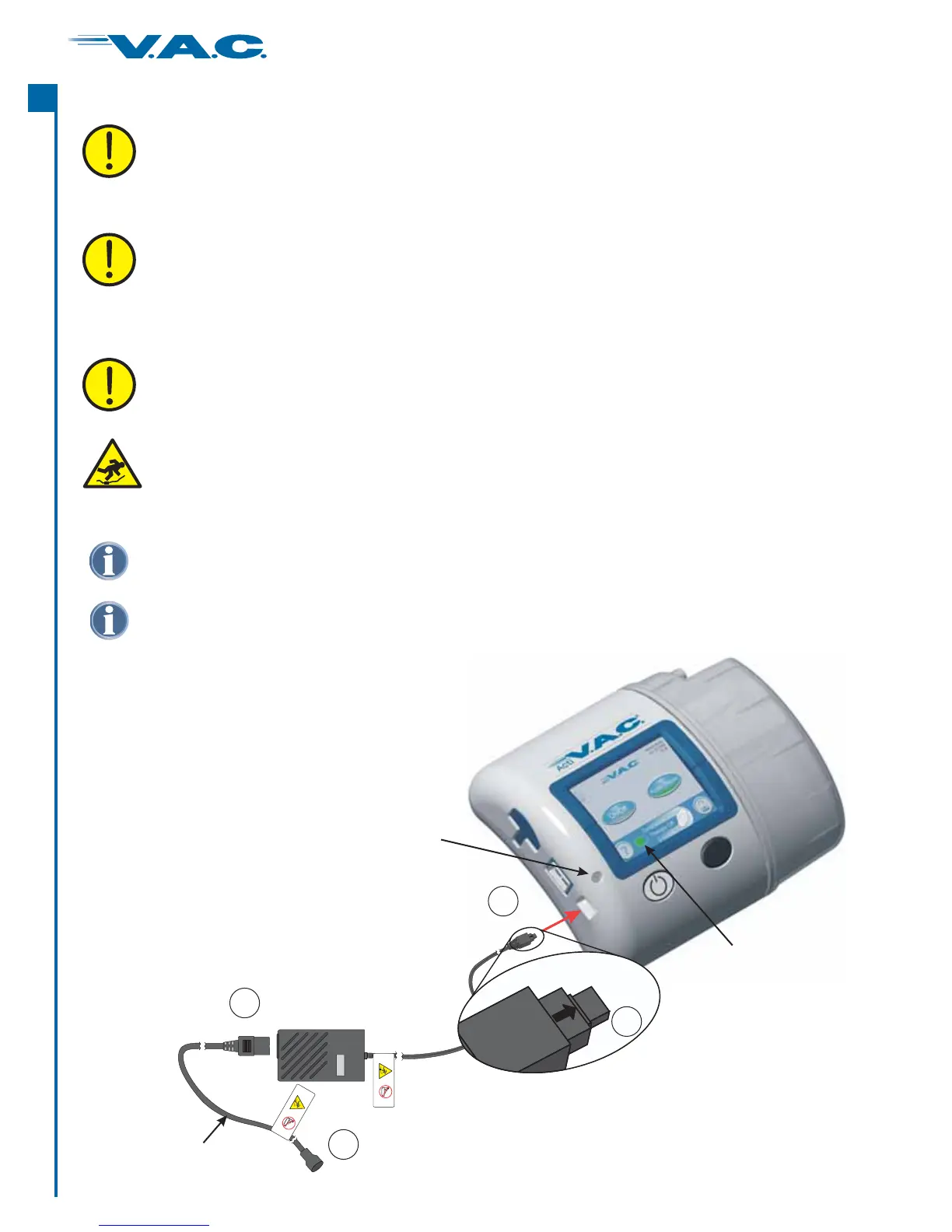 Use only the power supply provided with the ActiV.A.C. Therapy Unit. Using any