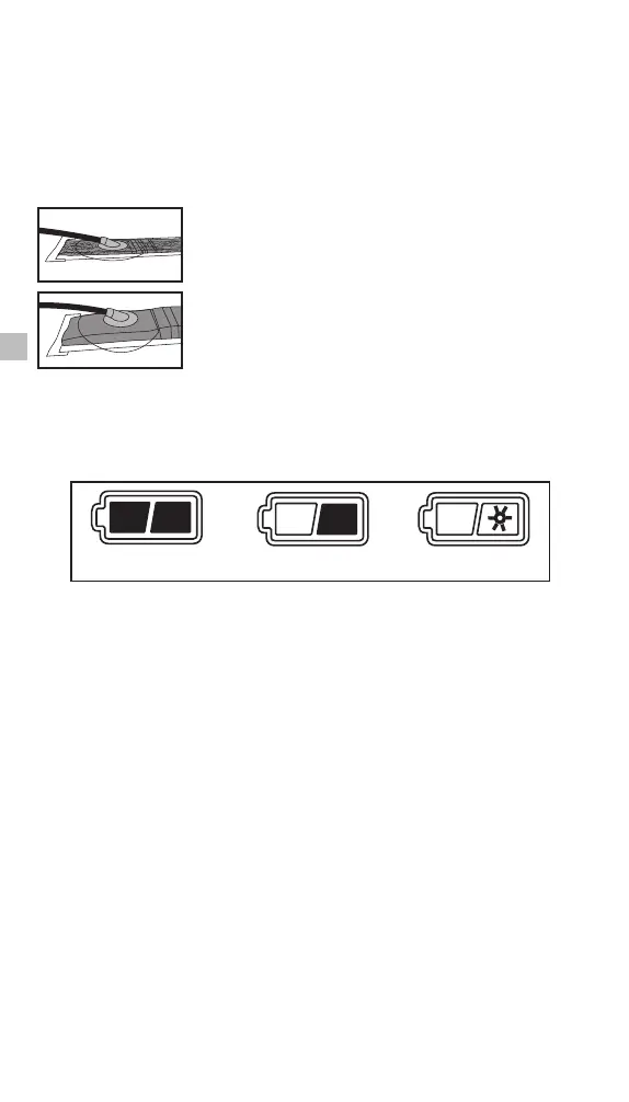 • Bijna leeg. Wanneer de accu bijna leeg is, resteert er een therapieduur van ongeveer twee uur.