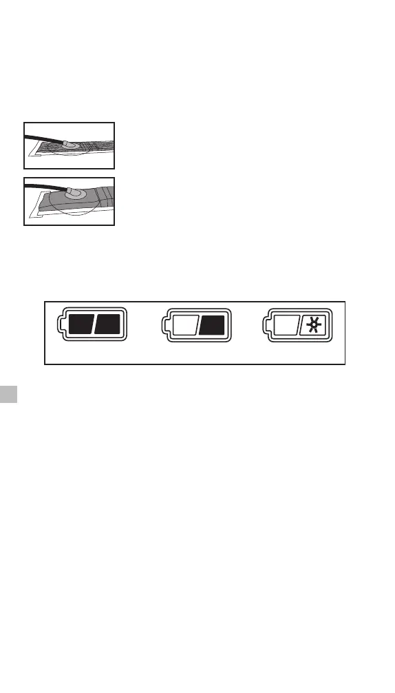 • Lav opladning. Når indikatoren viser, at opladningsniveauet er lavt, er der ca. to timers