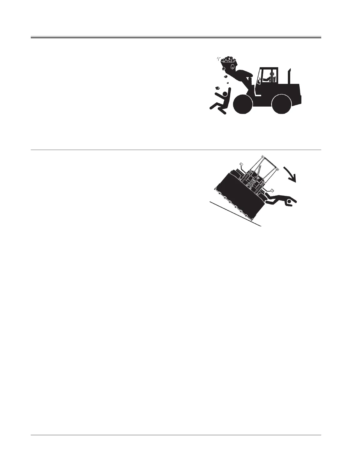 y Never allow the bucket or attachment to pass over co-