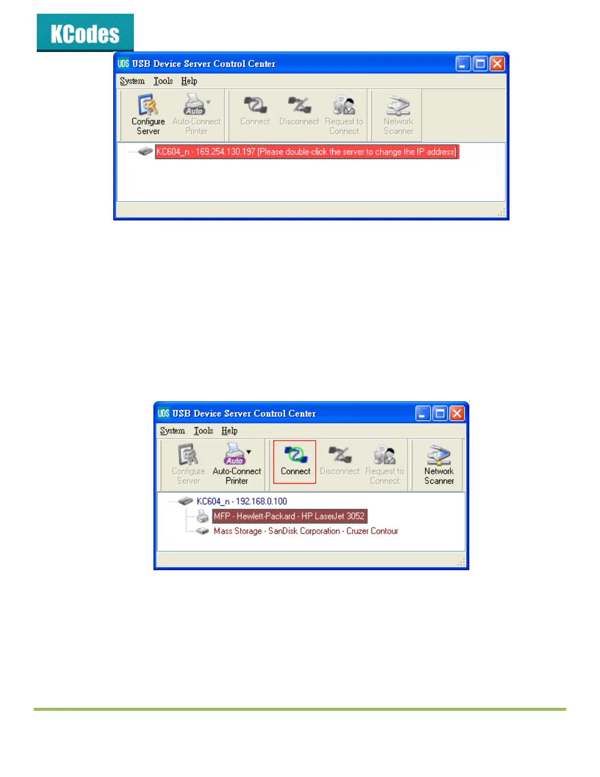 4. In the Control Center, click the USB device server that has the desired USB device attached.