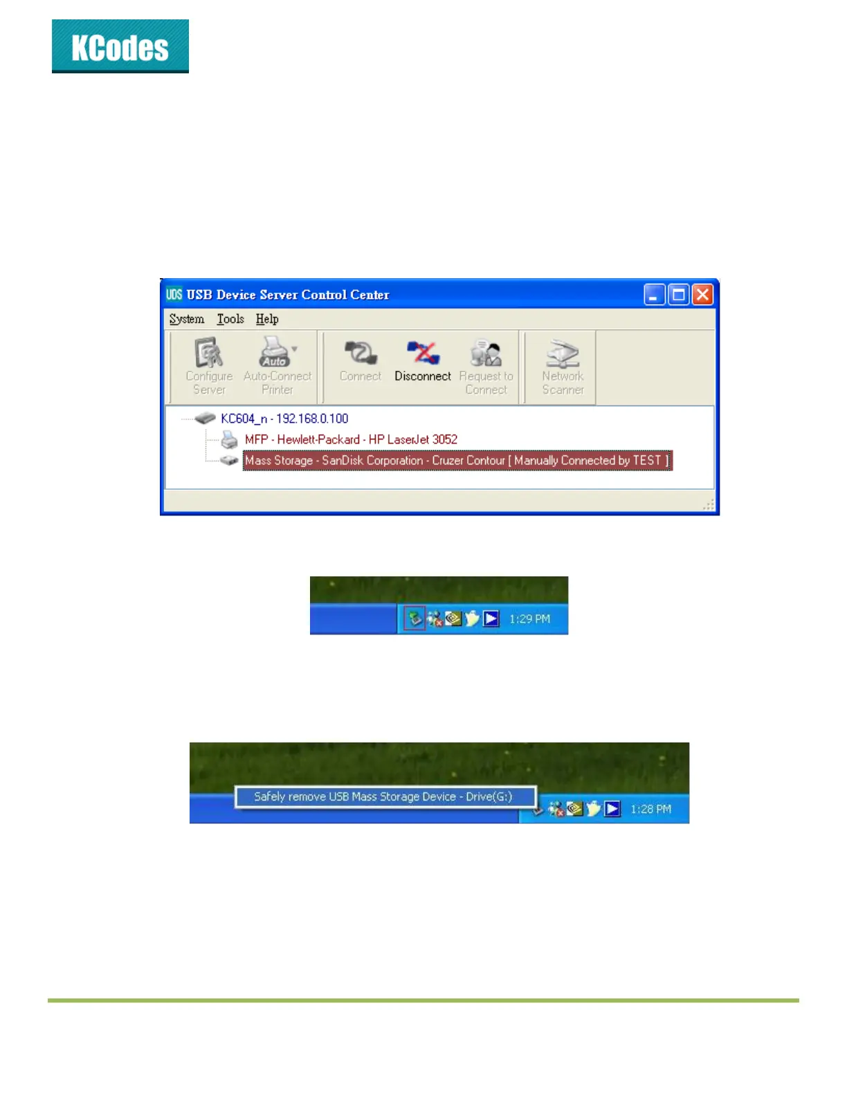 the system tray and choose “Safely remove USB Mass Storage Device” to remove the USB storage, as the
