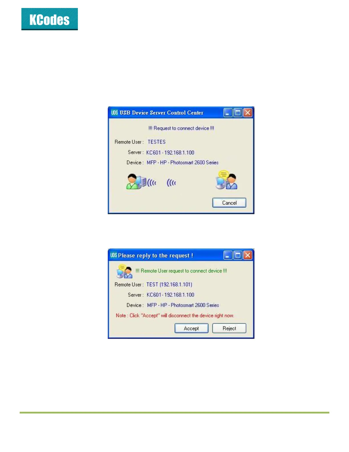 At this moment, the user on the TEST computer will see the following window, indicating that another