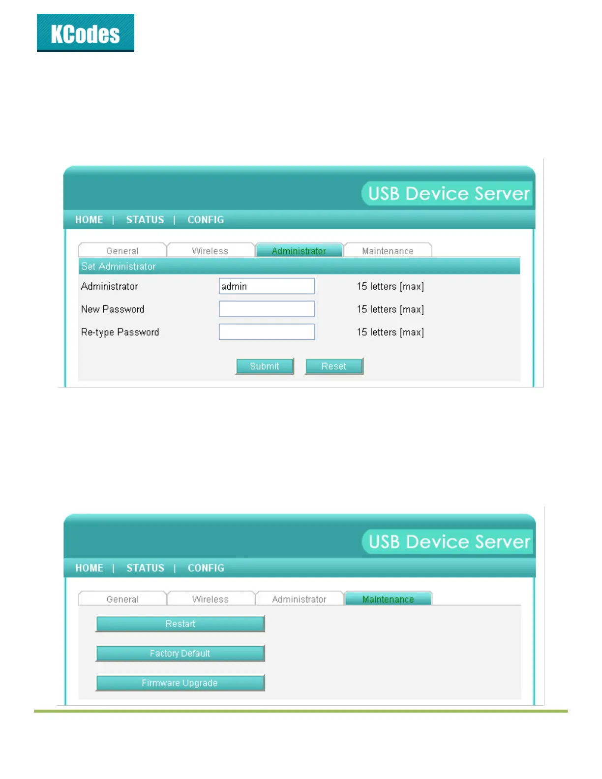 Administrator: You can change administrator name and password. If you forgot administrator