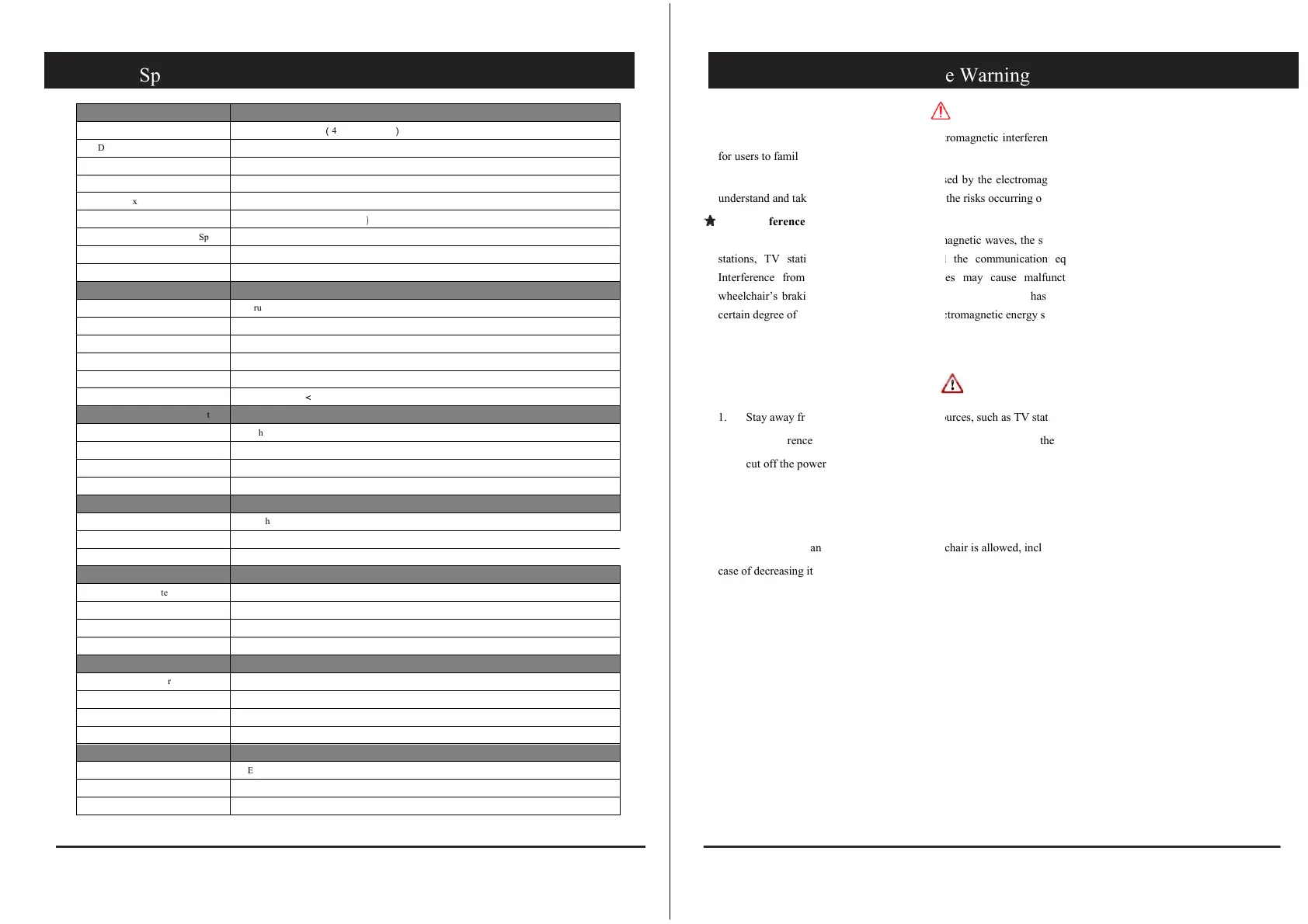 The power wheelchair is susceptible to electromagnetic waves, the sources of which come from broadcasting
