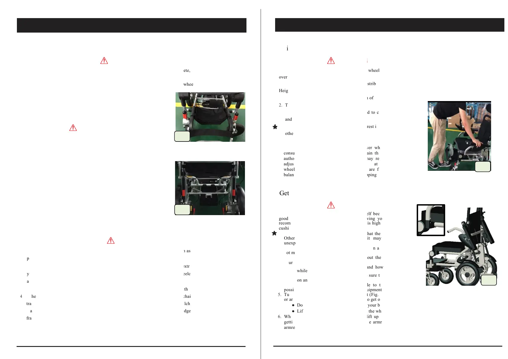 2. Do not use the wheelchair on sand, loose soil