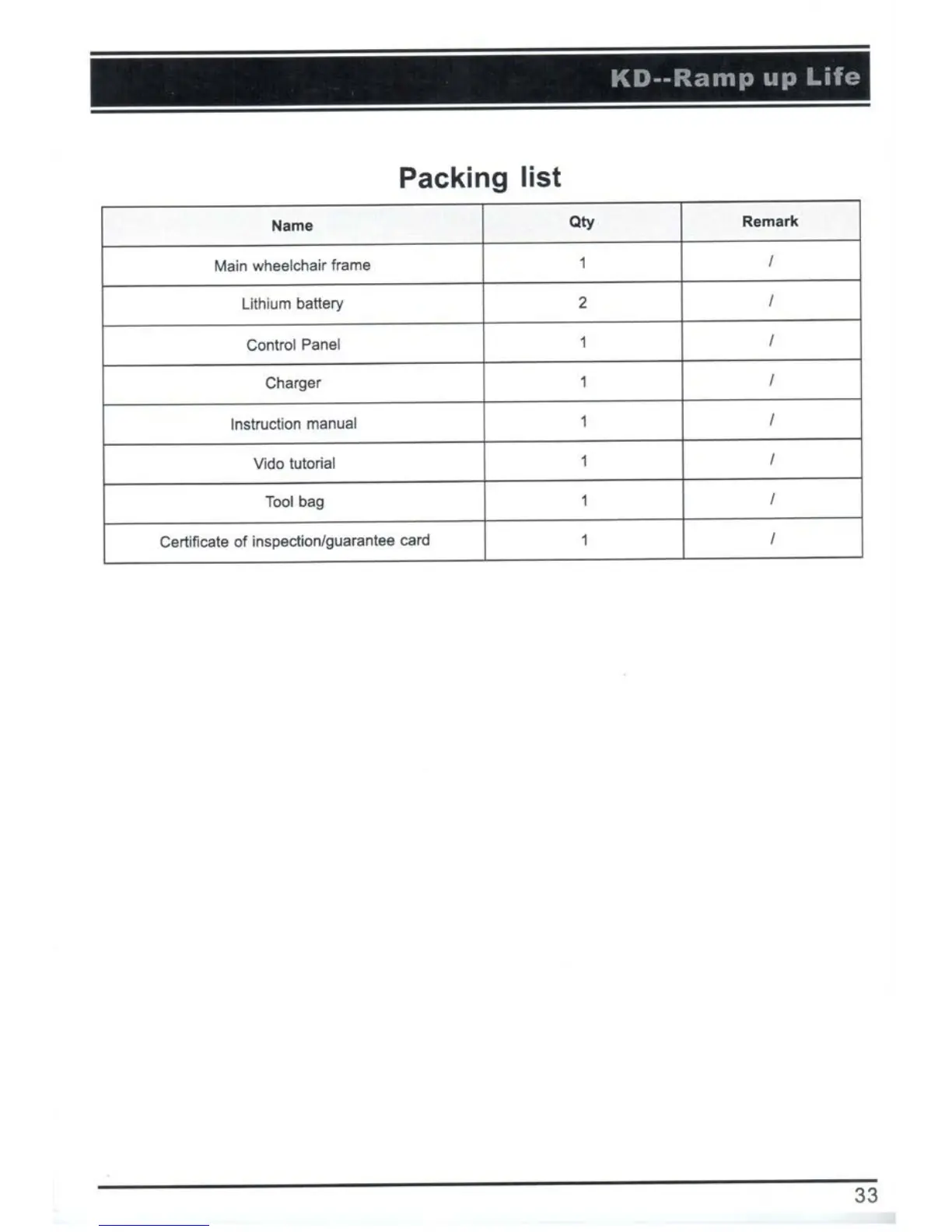 KD PL001 - Packing List