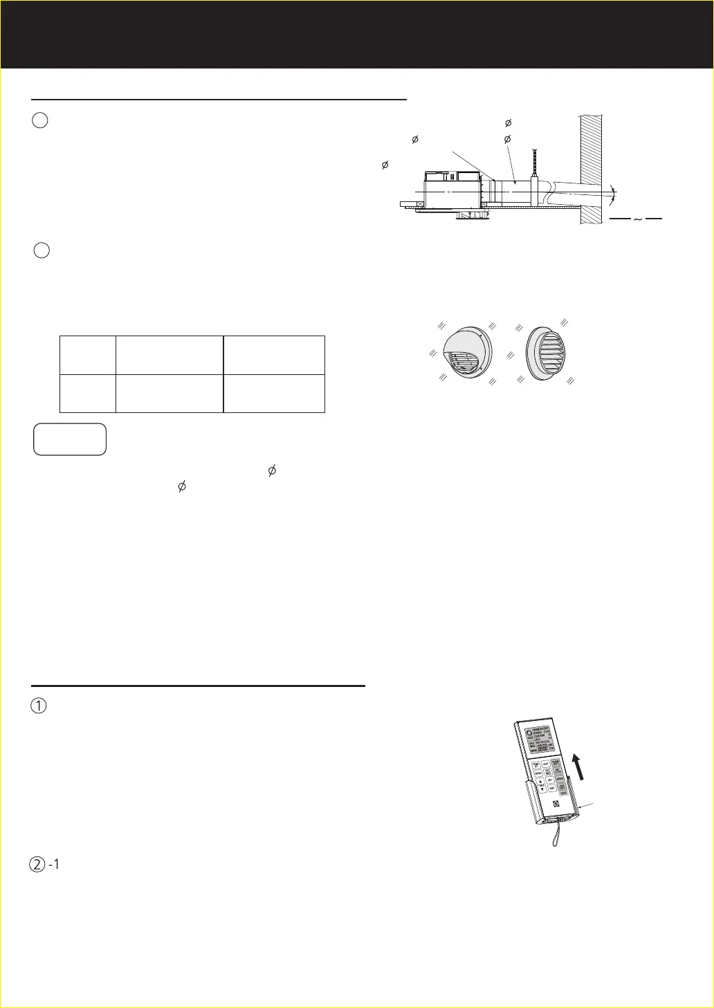 The duct pipe connected to outside of the room must be slanted to prevent rain or condensed water