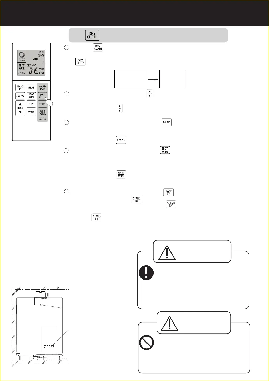 運轉過 程中,可通過 按鈕,調整風向。( 熱乾燥模式 結束後,進入換氣狀態,