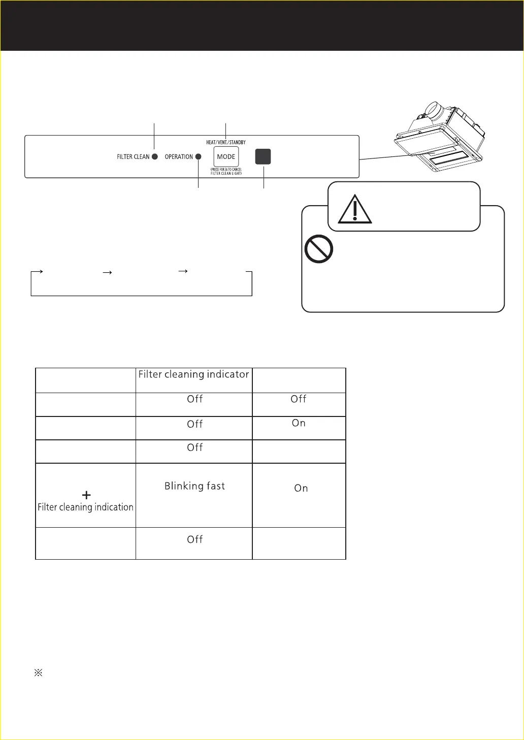過濾網 清潔指示燈及運轉指示燈的變化 。