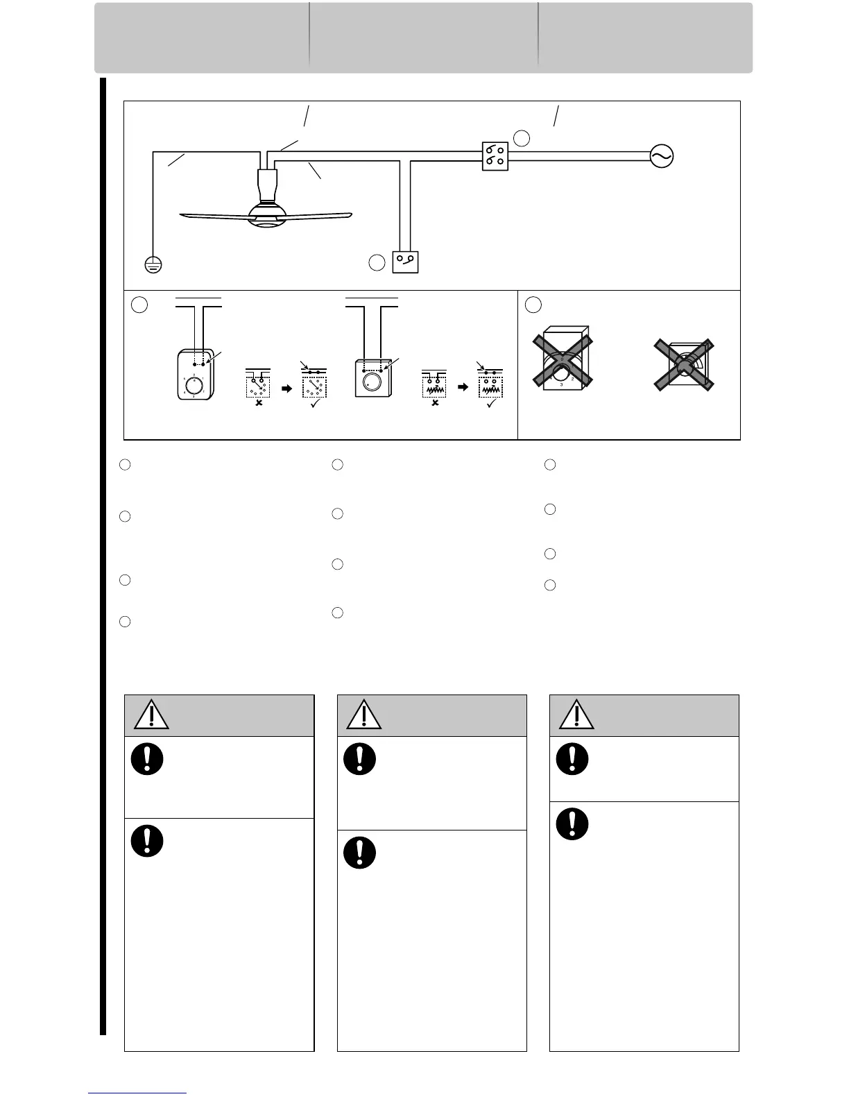 Hanya pemasangan arus elektrik terus ke suis dinding dibenarkan.