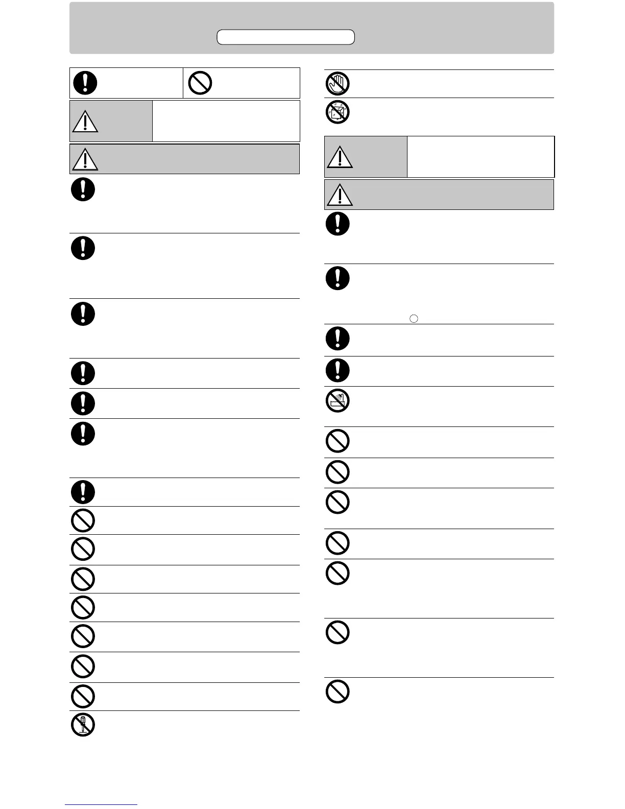 To avoid the possibility of causing injury to users or damage to properties, please follow all the explanations written below.