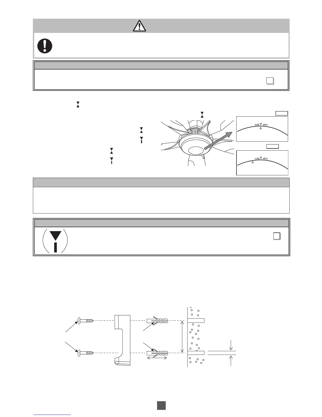 如吊扇操作時搖晃,請以不同位置組合安裝扇葉。重復該步驟,直到吊扇停止搖晃。