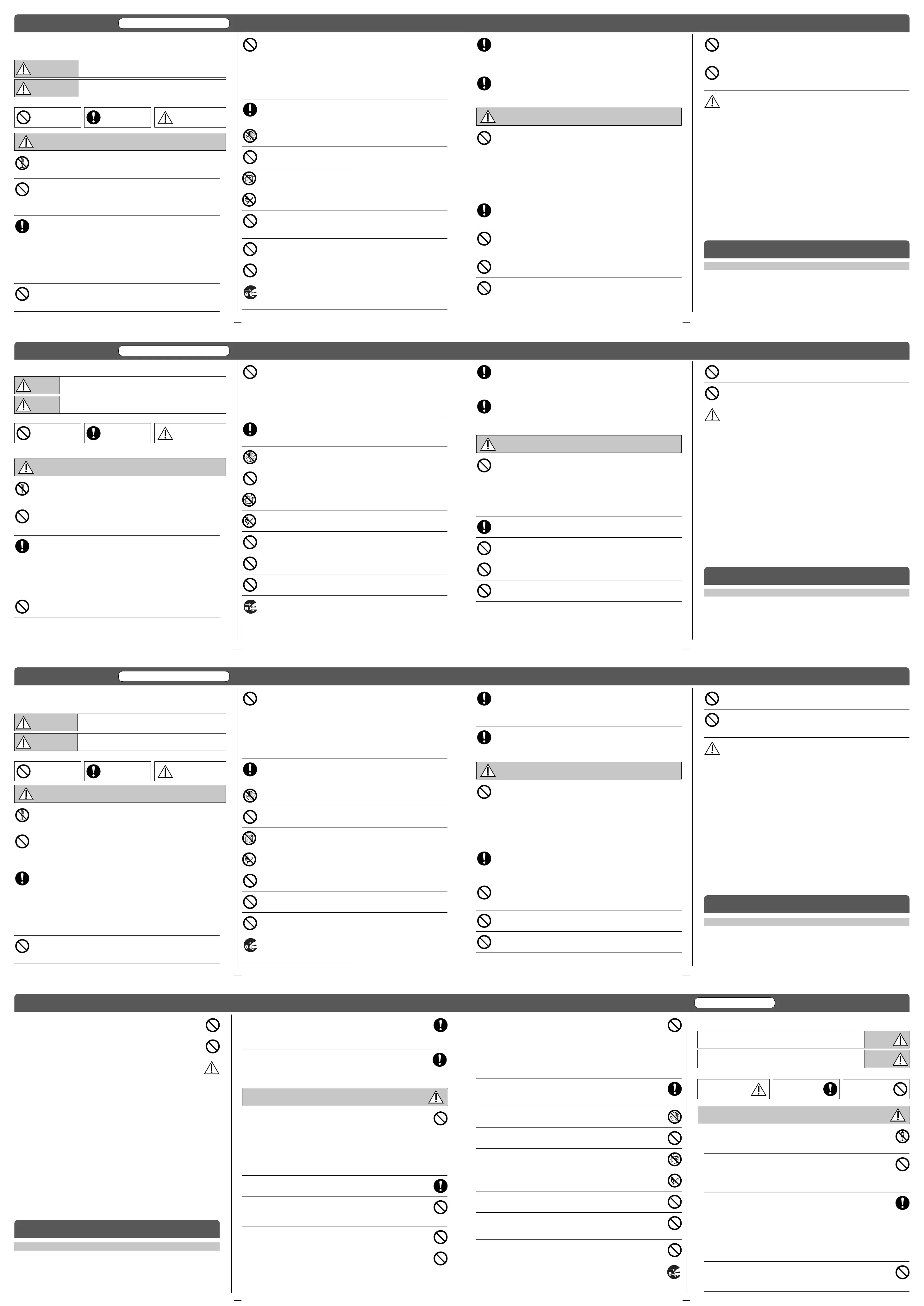 • The following symbols differentiate the levels of danger and injury that may result if the product is