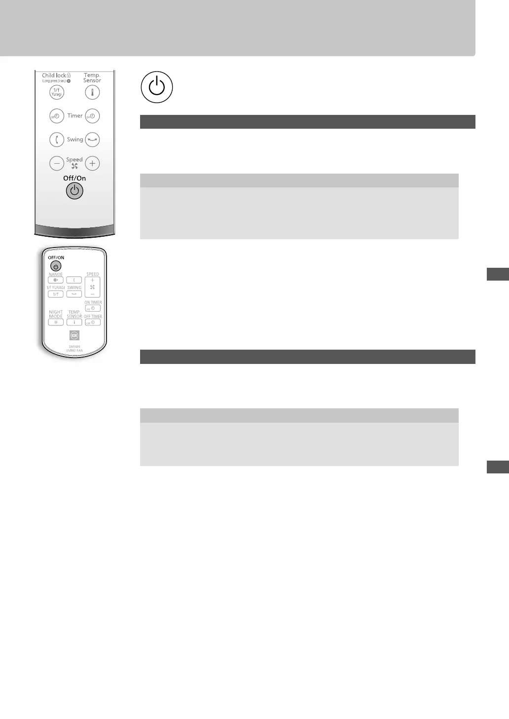 • Speed, Timer, Temp. Sensor and NANOE buttons are effective only when the fan is turned on.