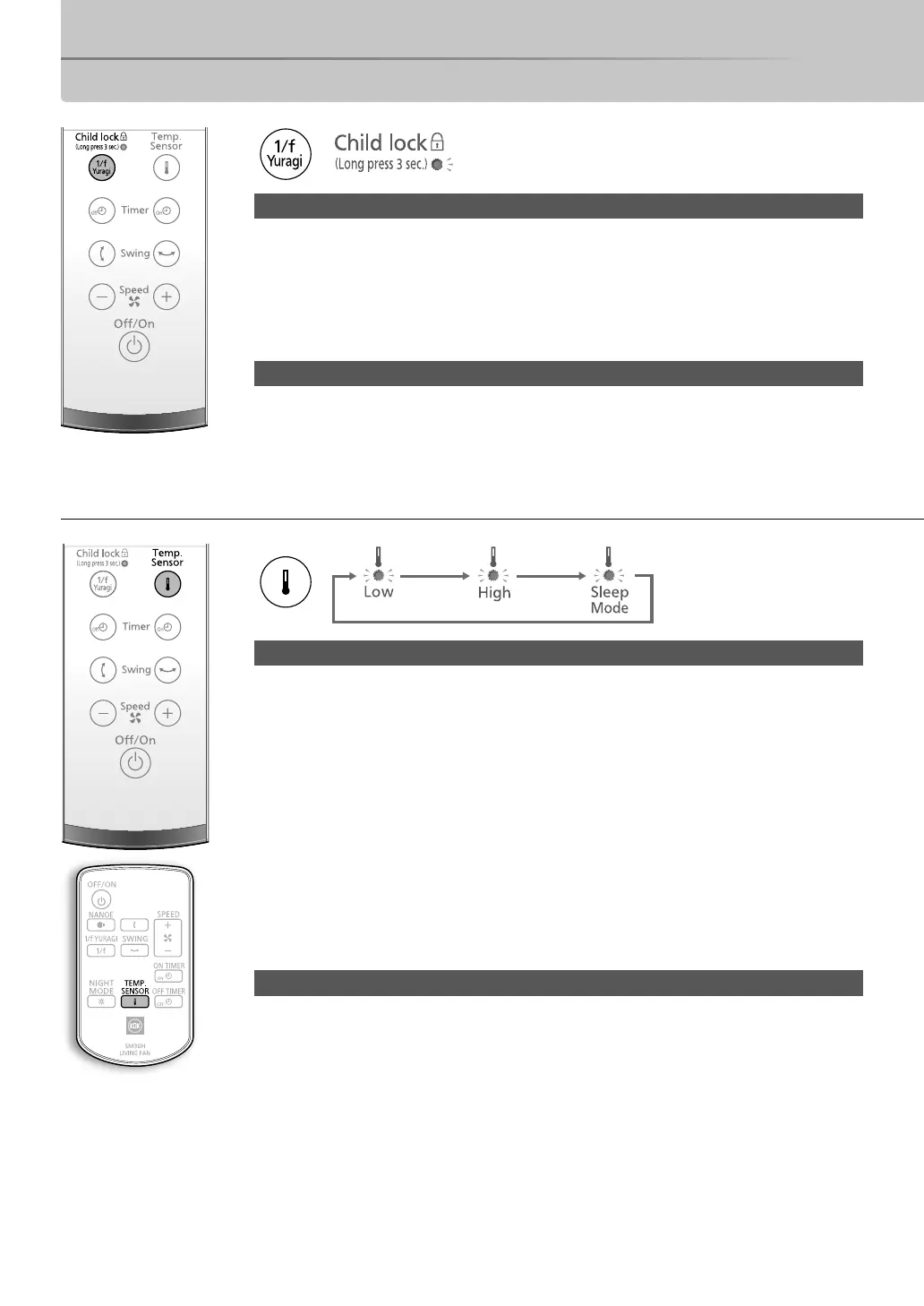 • If you set Child lock while the fan is turned off, only what you can do is to cancel Child lock.