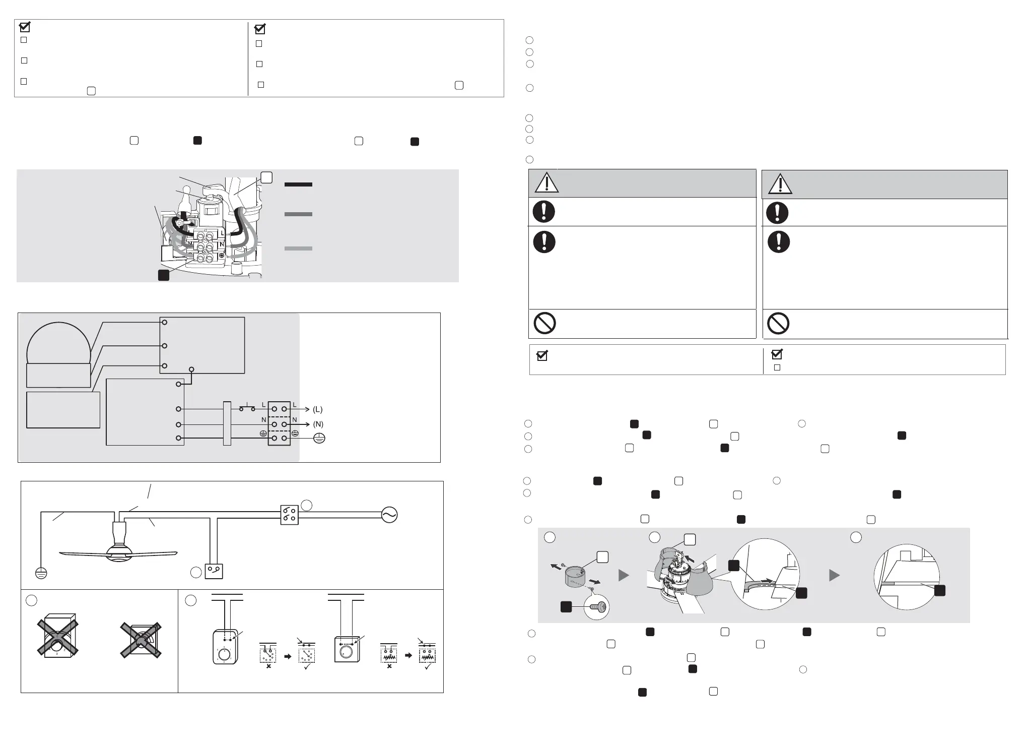 Can cause fi re, electrical shock, injury or Ceiling Fan to drop.