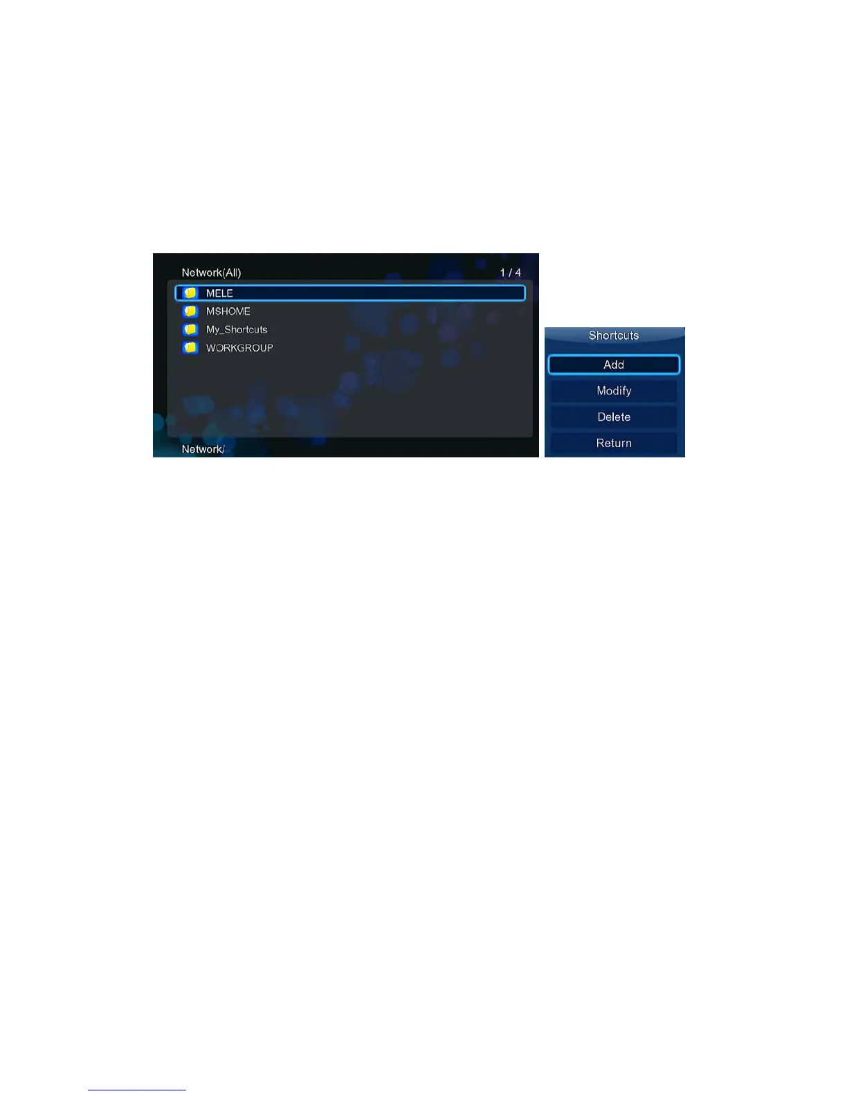Step 2, Visit Files ManagerUPnP menu on the player, select the UPnP-server, then you can