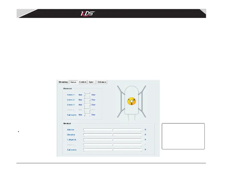 The page is used for setting servo reverse and neutral. See diagram3.4.1. The parameter