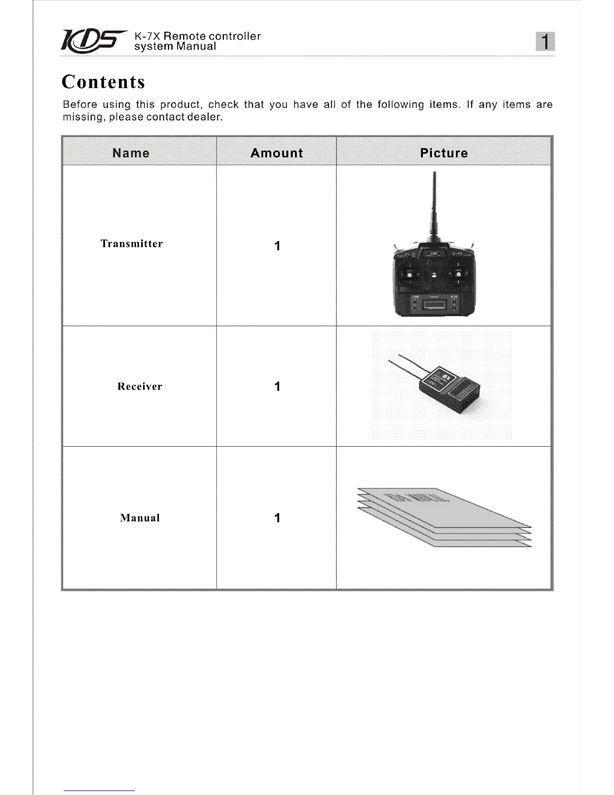 KDS K-7X - Contents