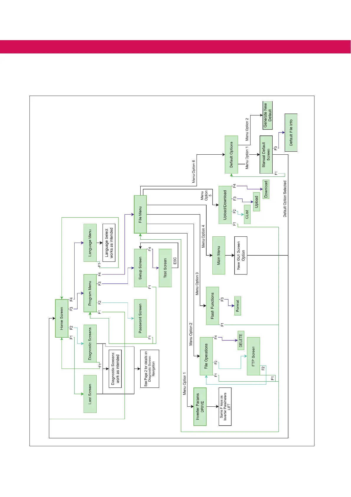 The diagrams in this section dispay the sequential ow of F6 operator screens when navigating the graphic