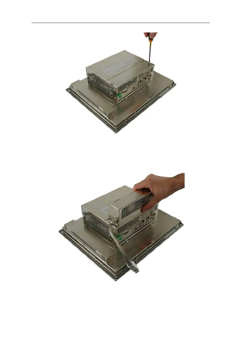 Attach the UPS module to the system with the two screws.