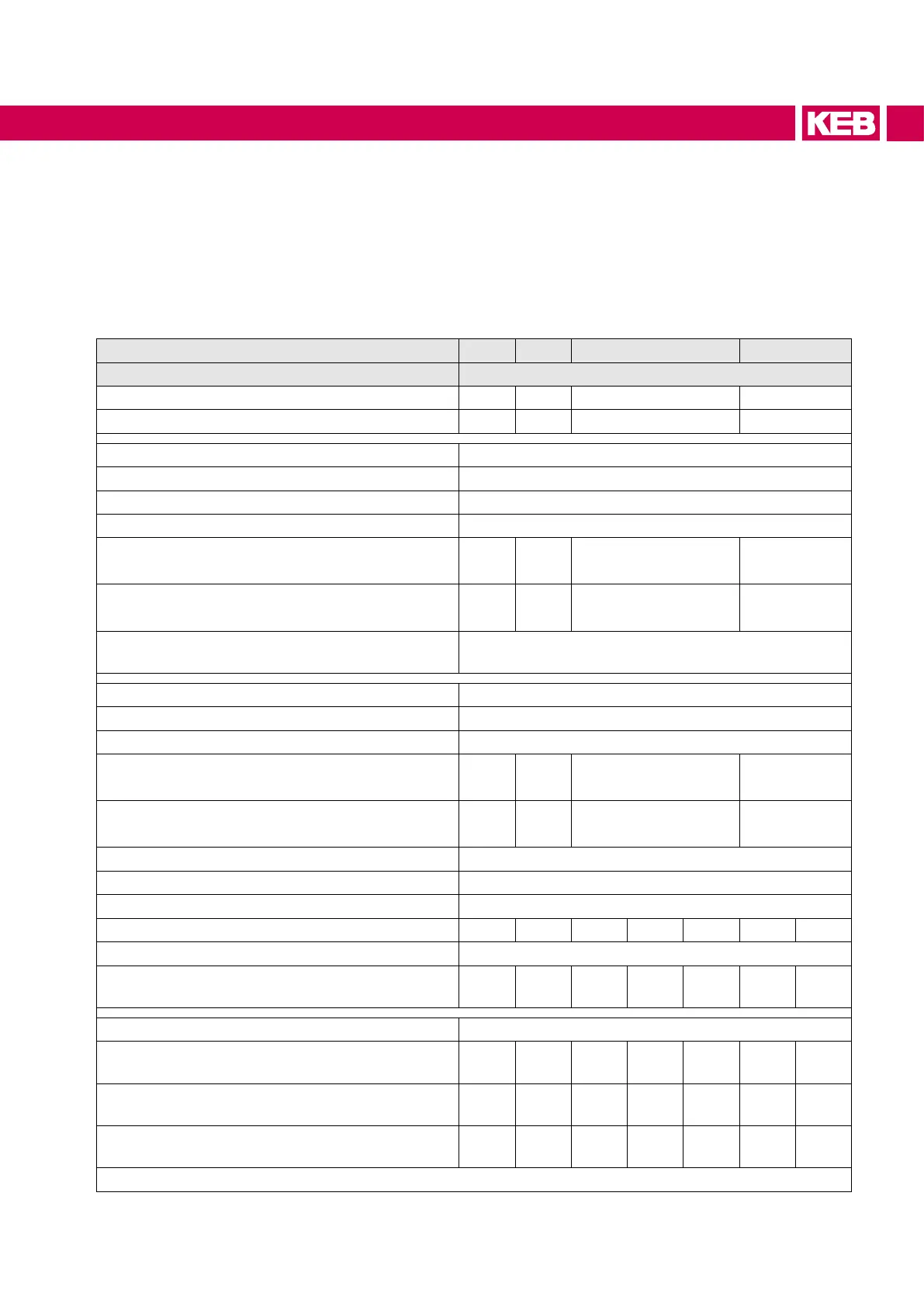 controller must be dimensioned onto the rated motor current. Contact KEB for special or