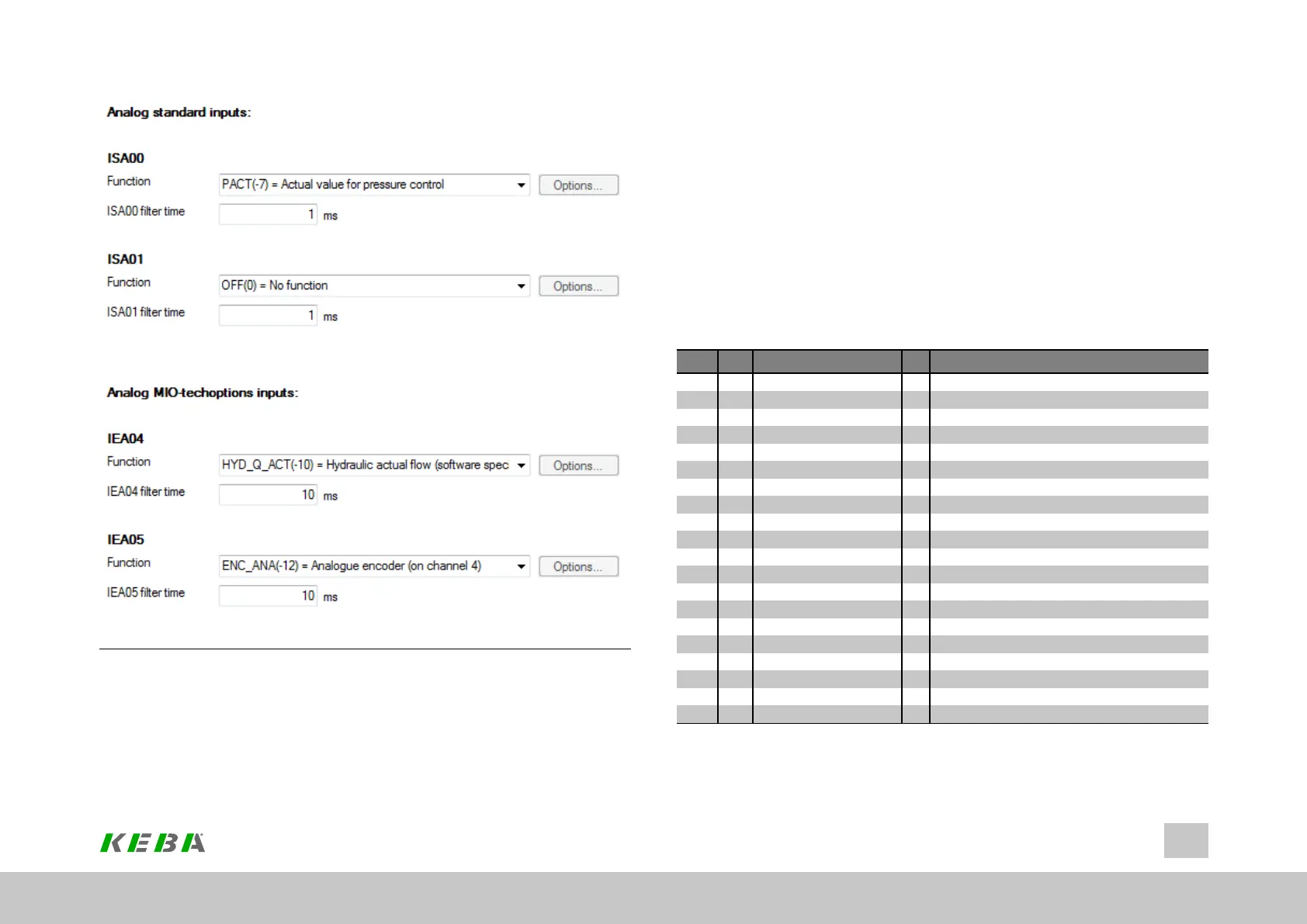 Image 7.56: “Hydraulic signal settings, analogue inputs” screen