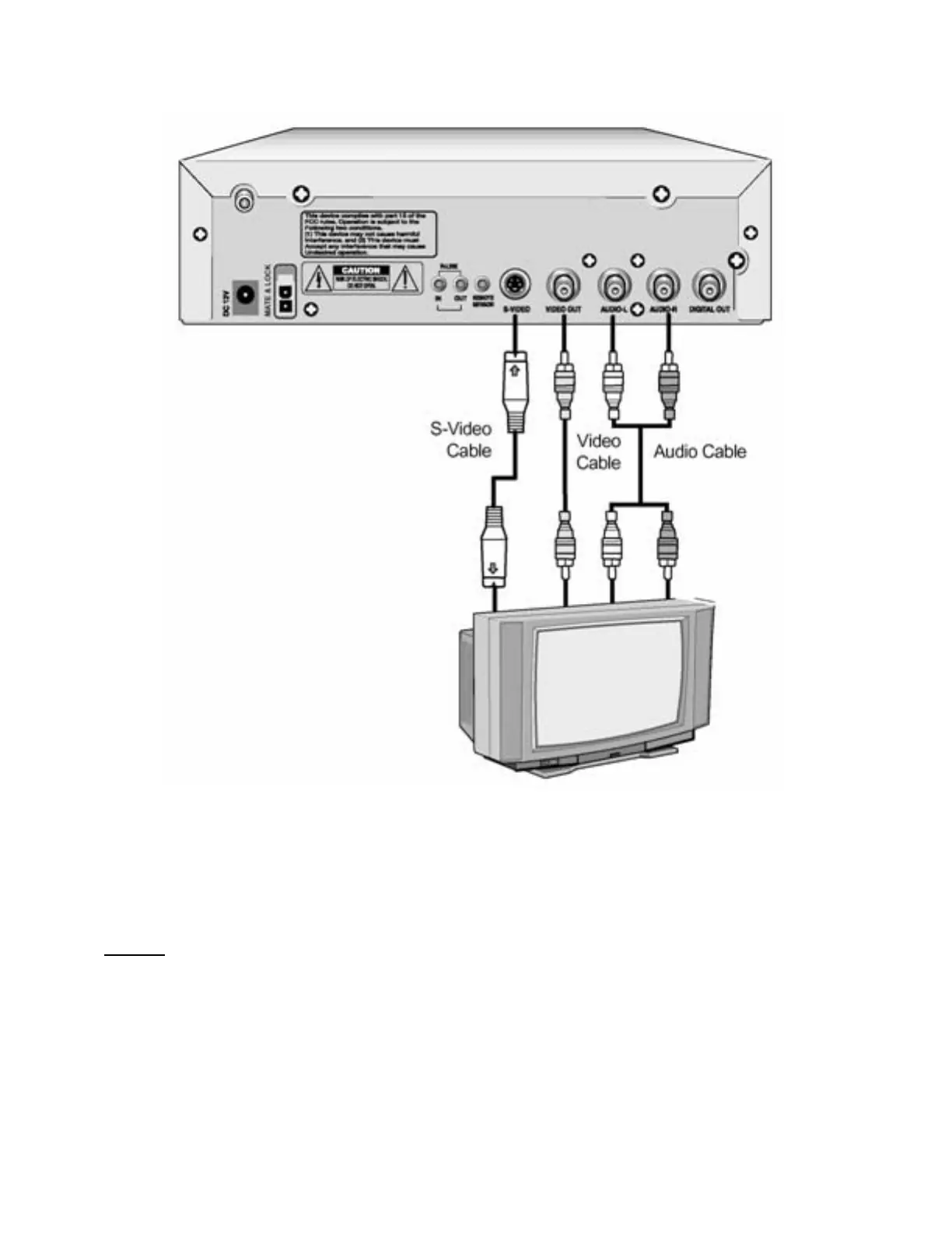 corresponding Video I nput jack on your TV or Monitor (I f your TV or Monit or has an S-Video jack,