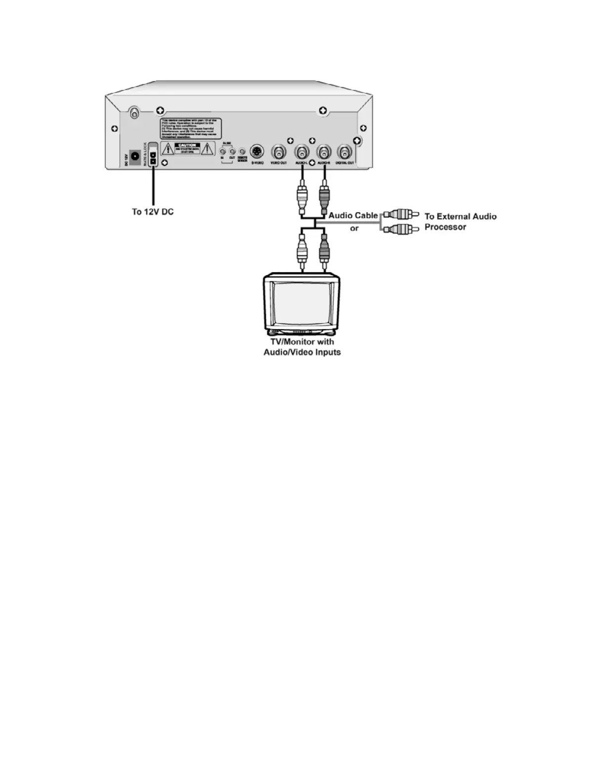 • Alternately, connect the audio cables from the back of the DVD-2 to an external audio processor such