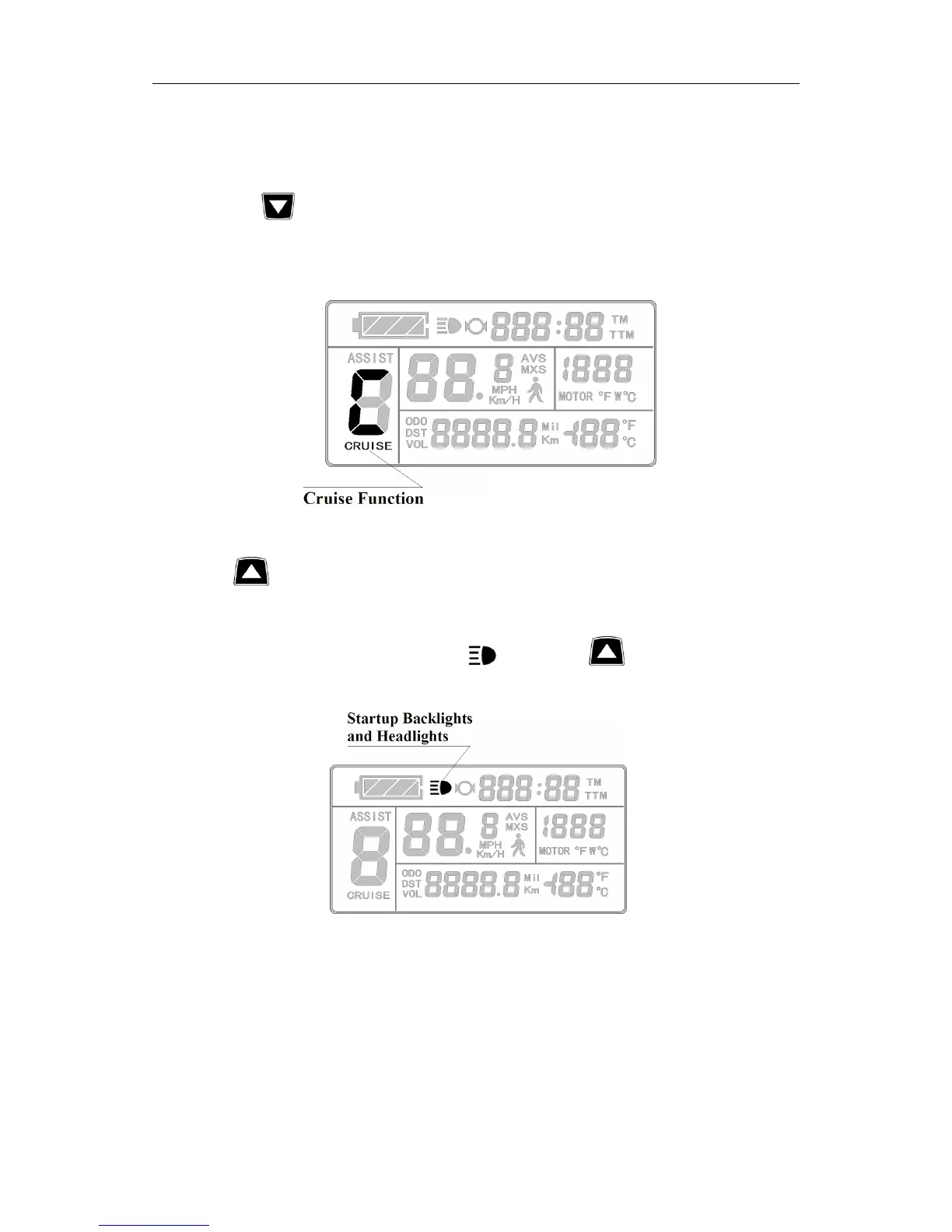 function, hold button (DOWN) long to enter the cruise status when the vehicle