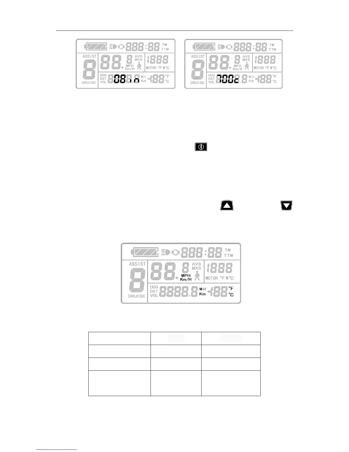 interface, and then the speed and mileage unit flash. Hold button (UP) or