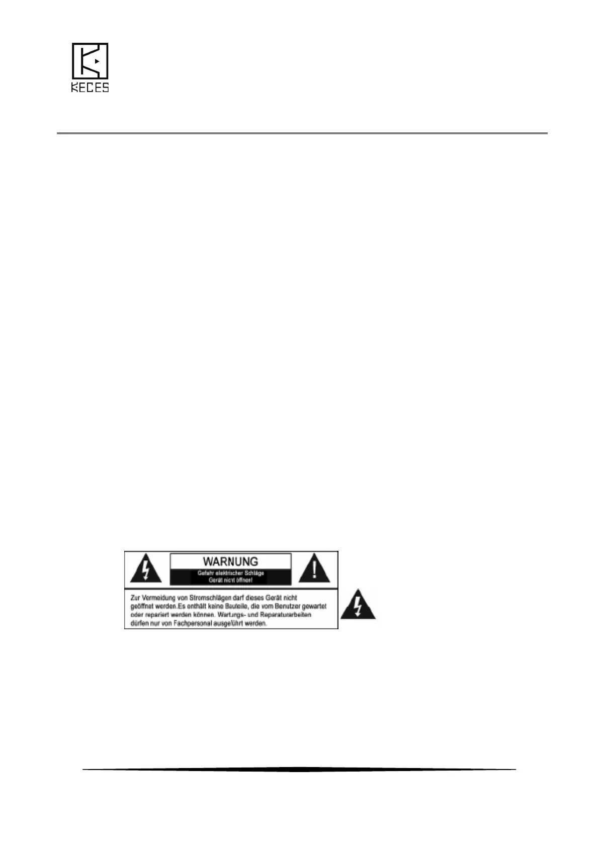 Niemals das Gerät öffnen. STROMSCHLAGGEFAHR ! Dies ist nur Fachpersonal