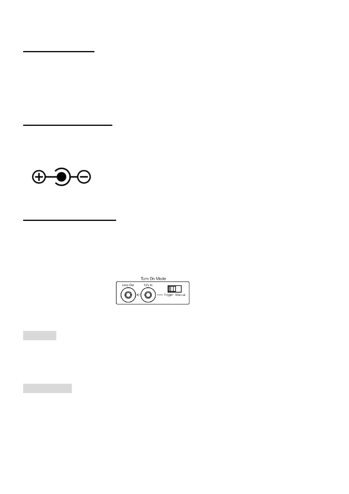 turns on and off. Setting the Turn On Options switch to Manual or 12 V Trigger