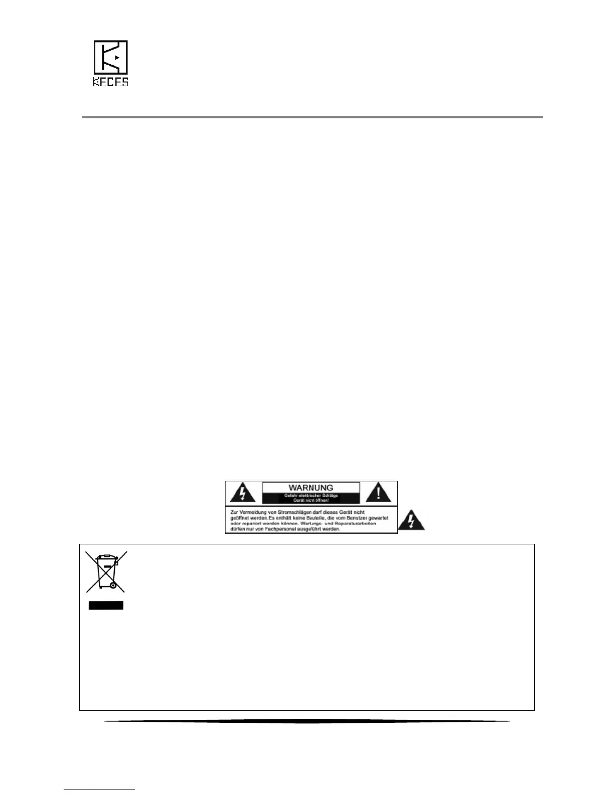 Niemals das Gerät öffnen. STROMSCHLAGGEFAHR ! Dies ist nur Fachpersonal