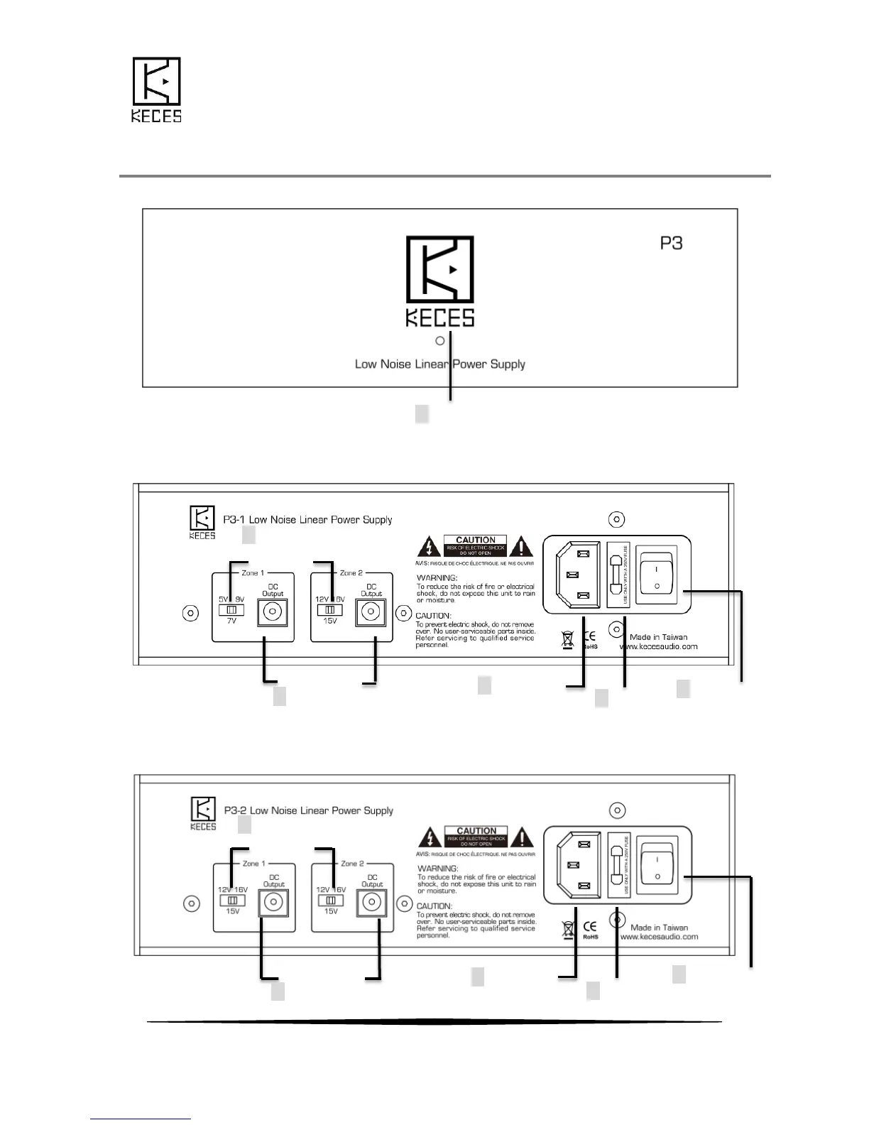 Keces P3 - Interface; LED Indicator; Output Voltage Selection; DC Output Port