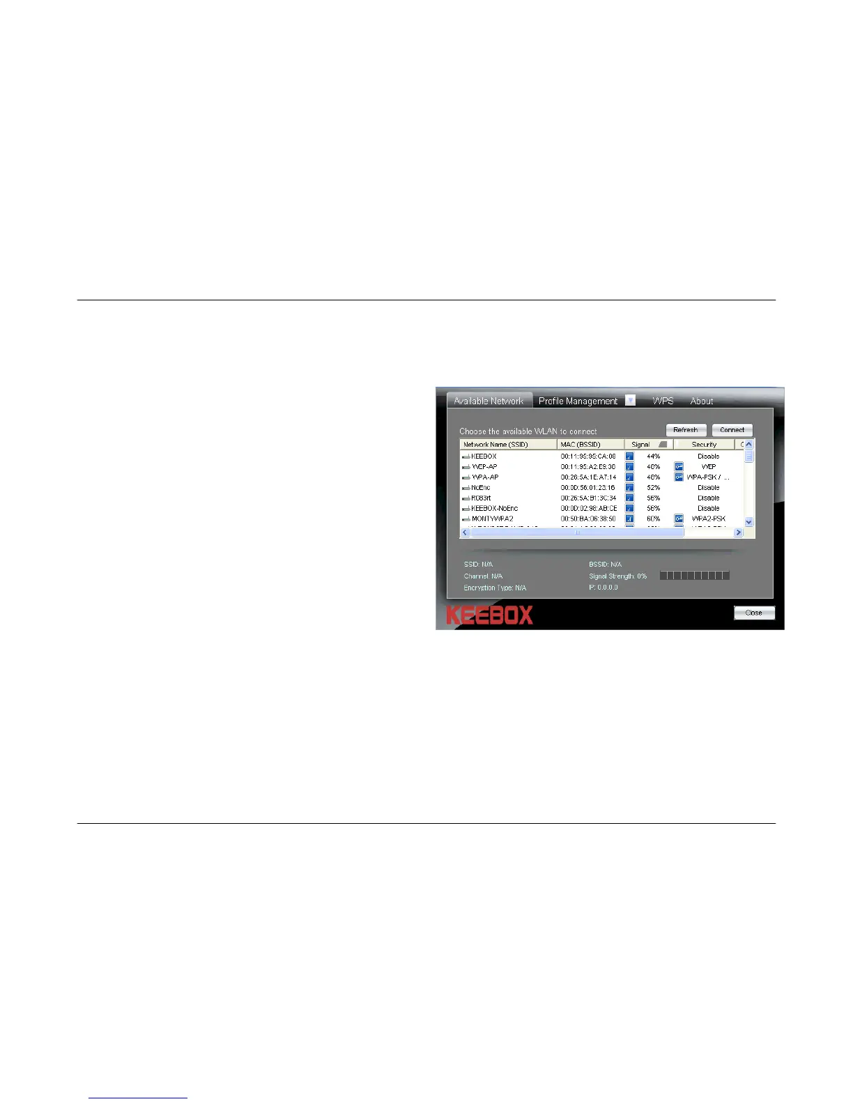 The Available Network window is used to display all the available wireless networks that are located in your area. You can also use