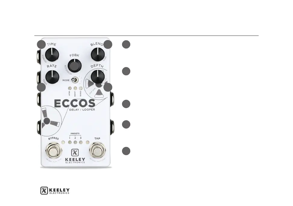 of your delays. Turn CCW for pitch vibrato. Turn CW