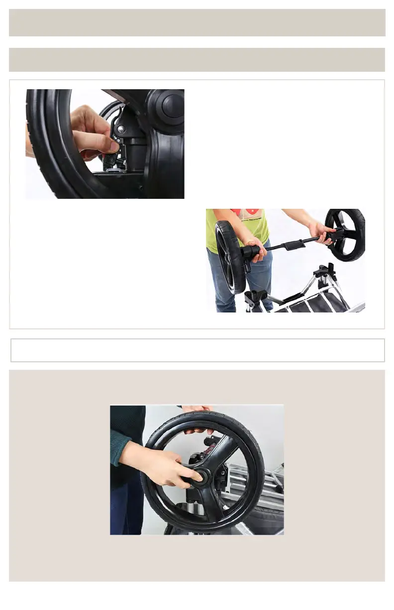 ETAPE 1: Tout en poussant sur le bouton (voir photo), tirer sur la roue pour l’enlever de l’essieu.