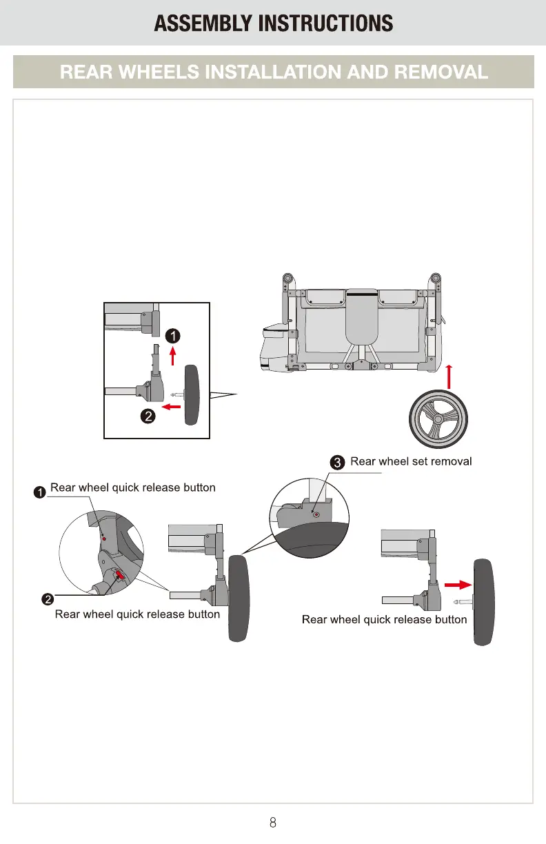 Insert the short rear leg tube into the rear axle (as shown in the picture) until you hear a snapping