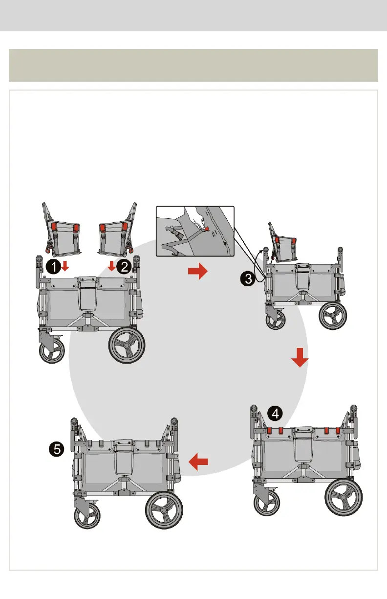 First put the seat (1)(2) into the compartment as shown in the picture, and then put the seat back