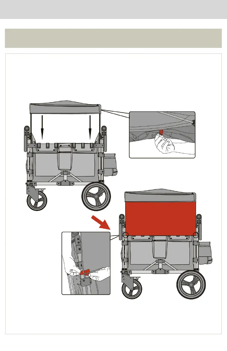 After the big canopy is installed, open the four buckles inside the big top, hang down the shade cloth