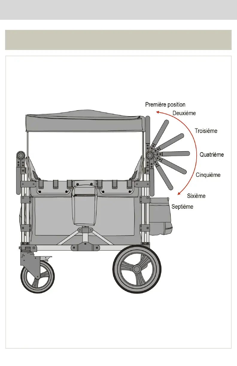 le bouton de réglage à l’intérieur du montant de la poignée de chaque côté avec votre pousse, et puis