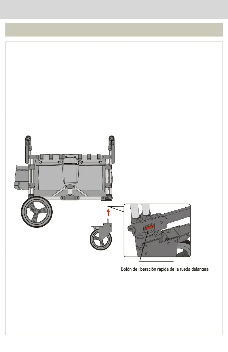 delantera, mueva el botón en la dirección de la flecha y extraiga el juego de ruedas delanteras del