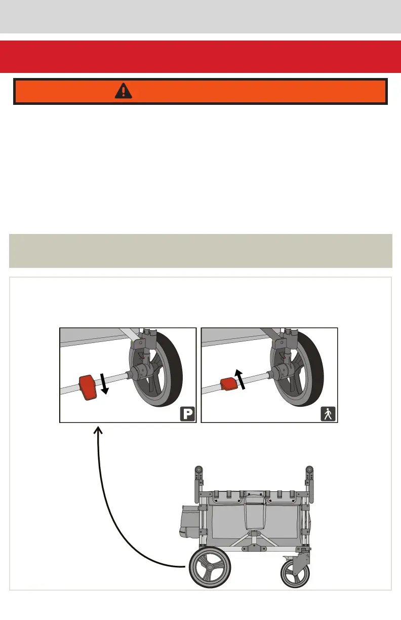 • No se estacione en superficies elevadas o inclinadas con los niños adentro, incluso si los frenos