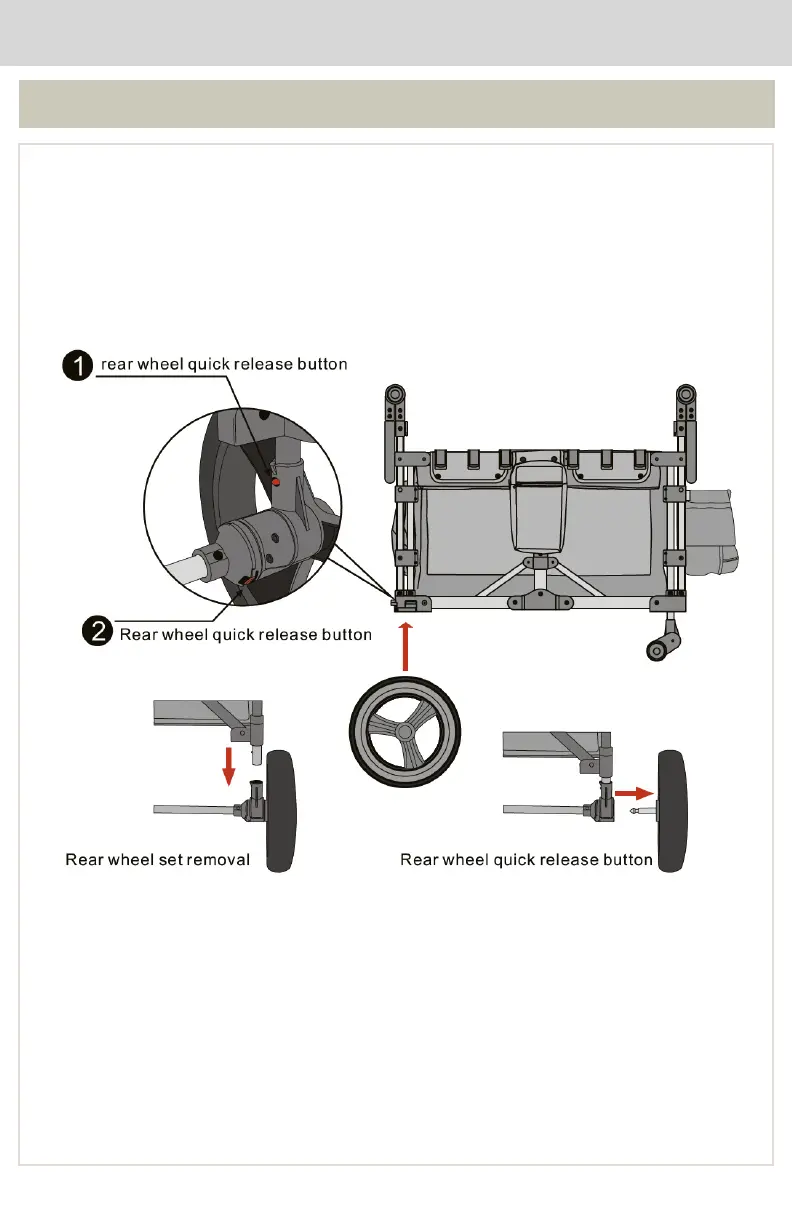 STEP 2: Find the rear wheel quick-release button (2), pull out the button, and pull out the rear wheel